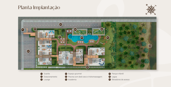 Infraestrutura de lazer completa: piscina com deck seco e hidromassagem, academia equipada, lounge relaxante, espaço gourmet, parque infantil, lavanderia, hall de acesso decorado e elevadores exclusivos. Segurança garantida na guarita e o conforto de unidades nascente total. São apenas 36 unidades, cada uma com vaga de estacionamento (1 para as de 2 suítes, 2 vagas para as de 3 suítes).