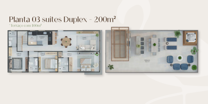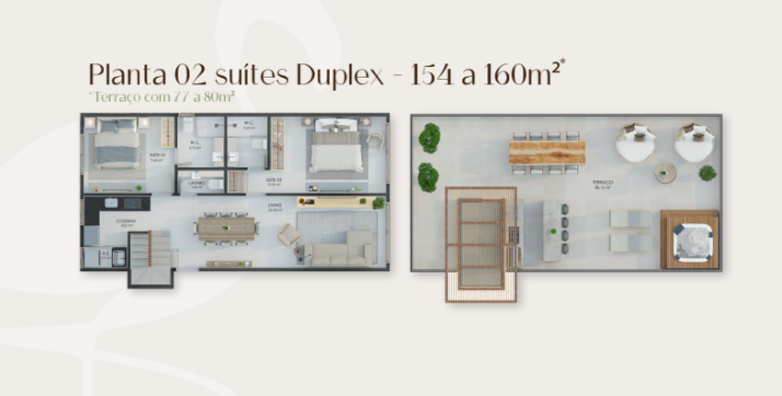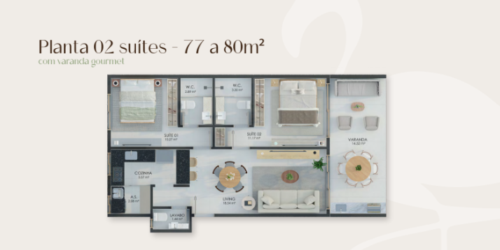 🏡 Unidades de 2 suítes (77,96m² a 80,15m²) ou 3 suítes (100,41m² a 100,49m²)