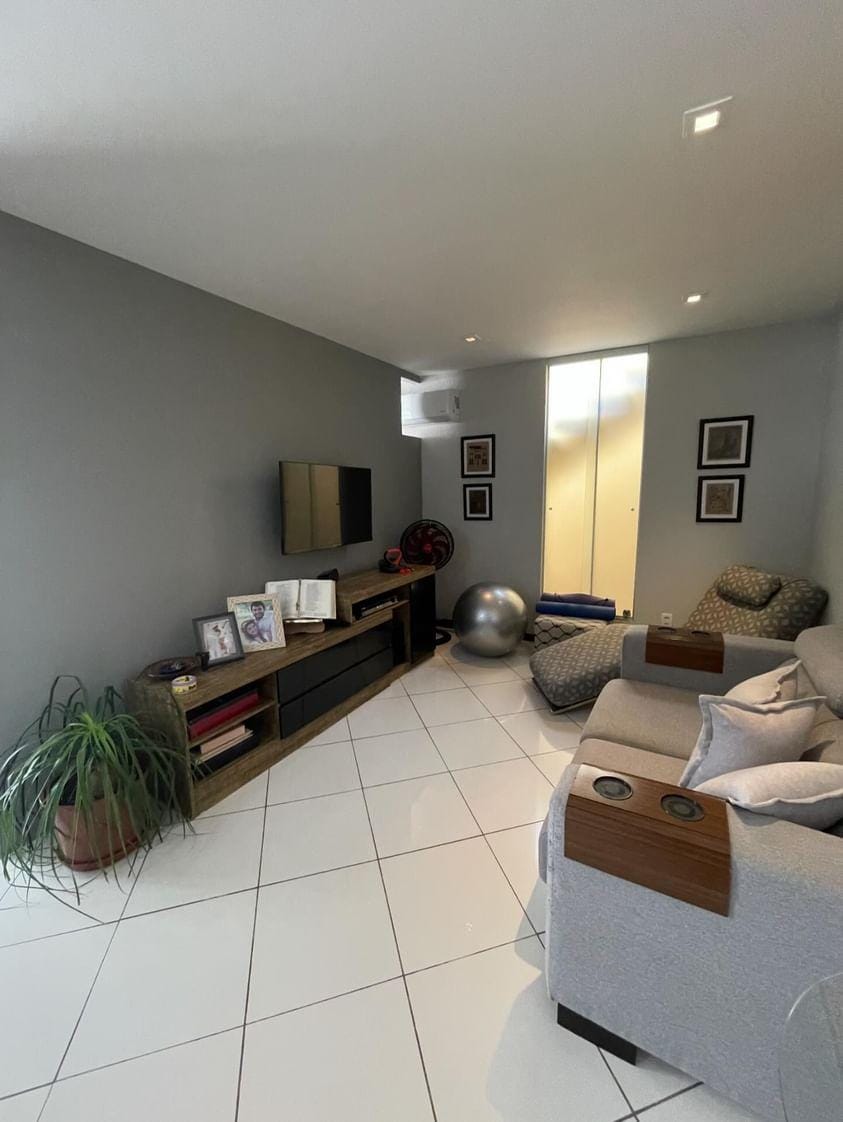 São 4 quartos bem distribuídos, com armários embutidos, e 5 banheiros que oferecem praticidade e conforto para toda a família. A sala ampla é perfeita para momentos de convivência, e a varanda espaçosa proporciona contato direto com o ambiente externo.