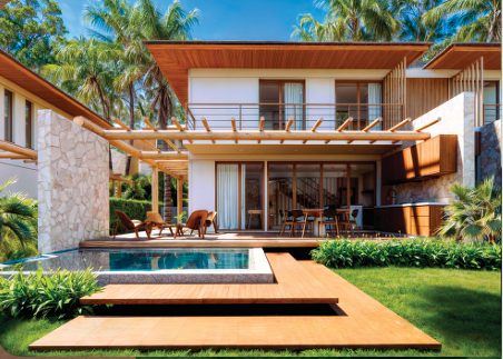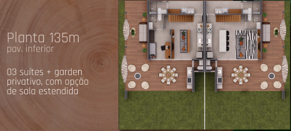 São casas de 3 suítes (135m²) ou 4 suítes (158m²), todas com garden privativo, ambientes amplos, sala estendida opcional, varanda gourmet e arquitetura diferenciada. Os projetos aproveitam ao máximo a luz natural e a ventilação da Reserva Sapiranga, uma área rica em fauna, flora, trilhas ecológicas, rios e cachoeiras.