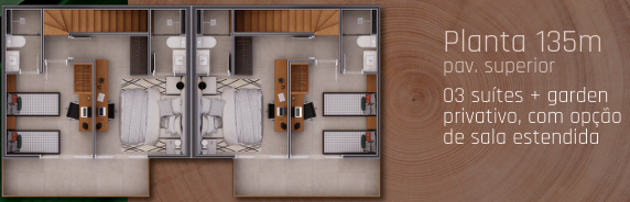 🛏️ Opção de 3 suítes (135m²) ou 4 suítes (158m²)